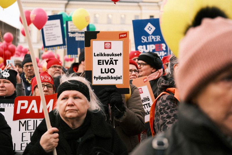 Etusivu » Ajankohtaista » Uutishuone » STOP nyt! -suurmielenosoitus keräsi Senaatintorin täyteen Uutiset 01.02.2024 16:38 STOP nyt! -suurmielenosoitus keräsi Senaatintorin täyteen Helsingin Senaatintorille kerääntyi noin 15 000 osallistujaa osoittamaan mieltä hallituksen työelämäheikennyksiä ja sosiaaliturvan leikkauksia vastaan. – Mikä on vaatimuksemme hallitukselle? Stop stop stop! Milloin sen haluamme? Nyt nyt nyt!, kaikuivat huudot Helsingin Senaatintorilla, kun Eeva Vekki ja Sanna Stellan huudattivat yleisöä. STOP nyt! -mielenosoitus keräsi Helsingin Senaatintorin täyteen osallistujista, jotka vaativat hallitusta painamaan jarrua suunnittelemansa työelämää ja suomalaisten hyvinvointia heikentävien toimien valmistelussa sekä neuvottelemaan työmarkkinajärjestöjen kanssa. Palkansaajakeskusjärjestöjen SAK:n ja STTK:n koolle kutsumaan mielenosoitukseen osallistui myös PAMin jäseniä paikalle runsain mitoin ympäri Suomen. Lavalla kuultiin puheen puheenvuoroja ammattiliittojen puheenjohtajilta, kansalaisjärjestöjen toimijoilta, hallitus- ja oppositiopuolueiden edustajilta sekä DJ Misterhustlan sekä Jukka Poika & DJ:n musiikkia. Mielenosoituksen ja parhaillaan käynnissä olevien poliittisten lakkojen taustalla on Orpon-Purran hallituksen päättämät ja suunnitteilla olevat lakimuutokset, jotka leikkaavat rajusti työttömyysturvaa ja muuta sosiaaliturvaa, rajoittavat lakko-oikeutta, heikentävät työehtoja ja lisäävät eriarvoisuutta yhteiskunnassa. Tavoitteena aidot neuvottelut SAK:n ja STTK:n puheenjohtajat Jarkko Eloranta ja Antti Palola peräänkuuluttivat mielenosoituksessa aitoja neuvotteluja, joissa myös työntekijäpuolta kuunneltaisiin. Liittojohtajat korostivat, että nyt käsillä olevat toimet murentavat työntekijöiden oikeuksia perustavanlaatuisesti. Liitot vastustavat muun muassa hallituksen kaavailemaa lakko-oikeuden rajoittamista, ensimmäisen sairauspäivän palkattomuutta ja heikennyksiä työttömyysturvaan, mutta erityisesti sitä, että hallitus iskee pienituloisiin, työttömiin ja ay-liikkeen toimintaan poikkeuksellisen laajalla paketilla. – Kukaan ei lakkoile kevyin perusten tai huvikseen, Antti Palola muistutti. – Suurin huoli on se, että tämä hallitus lisää köyhyyttä ja eriarvoisuutta, sanoi PAMin puheenjohtaja Annika Rönni-Sällinen omassa puheenvuorossaan. – Hallitus leikkaavaa työntekijöiltä nyt ennennäkemättömällä tavalla. Tarvitsemme ennen kaikkea kokoaikatyötä ja parempia työehtoja, emme leikkauksia! hän sanoi. ”Suurin huoli on se, että tämä hallitus lisää köyhyyttä ja eriarvoisuutta”, sanoi PAMin puheenjohtaja Annika Rönni-Sällinen. Työelämäheikennykset ja leikkaukset poikkeuksellisen rajuja ”EI leikkauksille! Nyt riitti!” vaadittiin Senaatintorin iskulauseissa ja kylteissä. Työlainsäädäntöä ja sosiaaliturvaa koskevat lakimuutokset vaikuttavat paitsi yksittäisten ihmisten oikeuksiin ja elämään, myös samaan aikaan rakeenteellisesti koko työmarkkinamalliin eli siihen, miten työehdoista sovitaan. Hallitus pyrkii esimerkiksi edistämään vientivetoista palkkamallia, jonka myötä vientialat määrittelisivät palkankorotuskaton muille aloille – myös palvelualoille. STOP nyt! -mielenosoituksessa olikin liikkeellä iso joukko PAMin jäseniä, joista moniin hallituksen leikkaukset kohdistuvat. Linja-autossa toisensa tavanneet Nina Lagerroos, Anne Periaho, Maarit Hörkkö ja Tero Kapanen kuvasivat tunnelmaa torilla erinomaiseksi.– Liikkeellä on hyvin porukkaa. Halusin näyttää nuoremmille esimerkkiä, että saneluun ei saa alistua, kertoo eläkkeellä oleva Maarit Hörkkö.– Pienituloisimmat kärsivöt näistä leikkauksista kaikkein eniten, se ei ole oikein, myyjänä Hyvinkäällä työskentelevä Tero Kapanen lisää. Nina Lagerroos, Anne Periaho, Maarit Hörkkö ja Tero Kapanen saapuivat torille samalla linja-autolla. Oulusta aamulla matkaan lähtenyt tarjoilija Ahmed Nawaz pitää työntekijöiden oikeuksien puolustamista tärkeänä. Häntä huolettaa erityisesti hallituksen leikkausten vaikutukset työntekijöiden toimeentuloon, kun samaan aikaan inflaatio tuntuu jo nyt arjessa. Ahmed oli kuullut, että Helsingin torille oli suuntaamassa tuhansia ihmisiä ja halusi ehdottomasti mukaan. – Uskon, että yhdessä voimme saada muutoksen aikaan. Ahmed Nawaz saapui Senaatintorille Oulusta. Lue lisää mielenosoituksesta tästä Katso lisää tunnelmia torilta Teksti: Minna RaitapuroKuvat: Pekko Korvuo Avainsanat: lainsäädäntö politiikka työttömyysturva Mitä pidit tästä sisällöstä? EmailKenttä on validointitarkoituksiin ja tulee jättää koskemattomaksi.Reaktio(Pakollinen) Tämä oli hyödyllinen Pidin kovasti tästä sisällöstä En ymmärtänyt Ei ollut hyödyllinen Kommentti (valinnainen)CAPTCHA Jaa Lue seuraavaksi Tiedotteet lainsäädäntö politiikka työsuhde PAMin Rönni-Sällinen: Hälytyskellojen pitäisi soida hallituksessa – pätkätyölaki on tekemässä vakipaikasta harvinaisuuden 11.12.2025 Tiedotteet kansainvälinen toiminta politiikka PAMin Rönni-Sällinen perää aitoa syytä SASKin avustuksen leikkaukselle: ”Näyttää jatkolta hallituksen ideologiselle ristiretkelle ay-liikettä vastaan” 5.12.2025 Tiedotteet kestävä kehitys lainsäädäntö politiikka Puheenjohtaja Rönni-Sällinen: Seuraavissa eduskuntavaaleissa sopimusyhteiskunnan ja hyvinvointivaltion aidoilla puolustajilla on vahva tukemme 28.11.2025 Näytä kaikki
