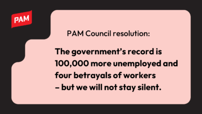 Press releases PAM's governing bodies politics unemployment The government’s record is 100,000 more unemployed and four betrayals of workers – but we will not stay silent 27.11.2025