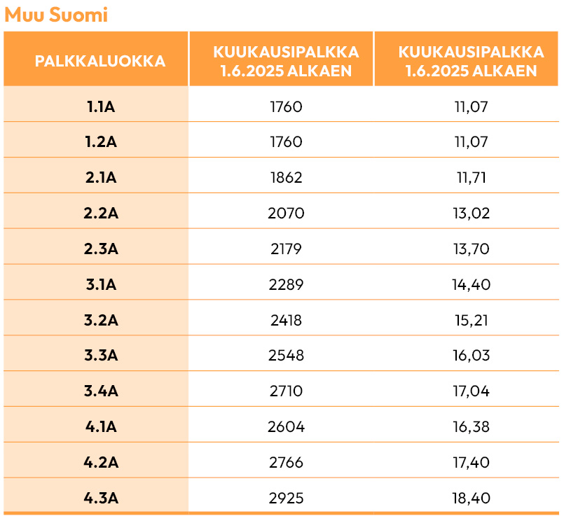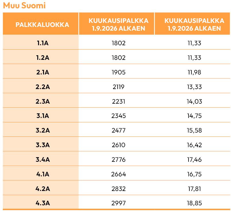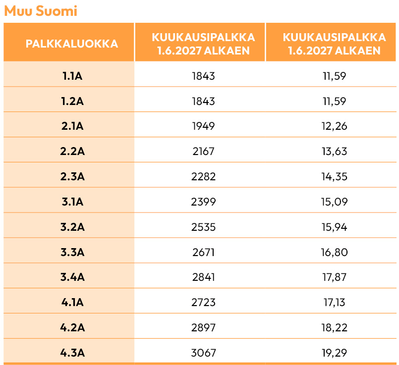 Etusivu » Työehtosopimukset » PAMin alojen työehtosopimukset » Alkon työehtosopimus » Allekirjoituspöytäkirja ← Takaisin sisällysluetteloon Allekirjoituspöytäkirja Sisällysluettelo Open or close menu Takaisin sisällysluetteloon Allekirjoituspöytäkirja 1. Sopimuskausi2. PalkankorotuksetVuosi 2025Vuosi 2026Vuosi 2027, jos työehtosopimusta ei ole irtisanottu3. Tekstimuutokset Aika 15.5.2025 Paikka Eteläranta 10 Läsnä Nelli Tyrkkö, Alko Oy Anu Nurro, Alko Oy Kari Pennanen, Alko Oy Tuomas Aarto, Palvelualojen työnantajat PALTA ry Minna Ääri, Palvelualojen työnantajat PALTA ry Mikko Saarinen, Palvelualojen työnantajat PALTA ry Jukka Höttöne, Alkon liikeväki ALV ry Satu Lintonen, Alkon liikeväki ALV ry Antti Turunen, Alkon liikeväki ALV ry Sakari Vaetoja, Alkon liikeväki ALV ry Anu Kähkönen, Palvelualojen ammattiliitto PAM ry 1. Sopimuskausi Tämän työehtosopimuksen voimassaolo alkaa 1.3.2025 ja päättyy 29.2.2028. Sopimus jatkuu 29.2.2028 jälkeen vuoden kerrallaan, ellei sopimusta irtisanota kirjallisesti viimeistään kahta kuukautta ennen sopimuskauden päättymistä. Uudesta työehtosopimuksesta neuvoteltaessa ovat aiemman työehtosopimuksen määräykset voimassa niin kauan, kunnes uusi työehtosopimus on tehty tai sopimusneuvottelut muuten ovat päättyneet. Osapuolet tarkastelevat joulukuun 2026 aikana sopimuksen tavoitteiden toteutumista sekä arvioitavissa olevia talouden ja työllisyyden näkymiä yhtiössä. Arvioinnin perusteella kummallakin osapuolella on mahdollisuus irtisanoa työehtosopimus päättymään 28.2.2027. Irtisanomista koskeva ilmoitus on kirjallisesti toimitettava viimeistään 31.1.2027 toiselle sopijapuolelle. 2. Palkankorotukset Palkkoja korotetaan seuraavasti: Vuosi 2025 Taulukkokuukausipalkkoja korotetaan 1.6.2025 tai lähinnä sen jälkeen alkavan palkanmaksukauden alusta yleiskorotuksella. Korotetut kuukausi- ja tuntipalkat ovat seuraavat: PK-seutu Muu Suomi Entisessä palkkaluokassa T olleiden henkilöiden palkkoja ei koroteta ja heidän siirtymäkauden palkanosansa pienenee vastaavan verran kuin heidän tavoitepalkkaluokkansa taulukkopalkka on noussut. Siirtymäajan palkanosa on tekninen toteutus, jonka suuruus pienenee sitä mukaa kuin vaativuusluokan tehtäväkohtainen peruspalkka nousee. Kun tavoitepalkkaluokan palkka kohoaa samalle tasolle tai yli palkkaluokka T:n palkan (31.12.2024), jää siirtymäajan palkanosa kokonaan pois ja palkka muodostuu ainoastaan vaativuustason ja palkkaryhmän mukaisesta taulukkopalkasta. Jos tavoitepalkkaluokan palkka on korkeampi kuin henkilökohtainen palkka, nostetaan henkilön palkka tavoitepalkkaluokan taulukkopalkan tasolle. Myymälätyöntekijöiden palkkojen korottamiseen käytetään 0,1 % suuruinen yrityskohtainen erä, jonka suuruus lasketaan tämän työehtosopimuksen piiriin kuuluvien työntekijöiden maaliskuussa 2025 maksettujen henkilökohtaisten palkkojen yhteenlasketusta summasta. Olosuhdelisiä ei oteta huomioon palkkapotin määrittämisessä. Jos henkilölle ei ole maksettu maaliskuun aikana ollenkaan palkkaa, ei hänen palkkaansa oteta huomioon palkkapotin laskennassa. Yrityskohtaisen erän perusteella jaettavat korotukset tulevat voimaan 1.9.2025. Työnantaja jakaa yrityskohtaisen erän sekä antaa pääluottamusmiehelle tiedon yrityskohtaisen erän saajien määristä ja keskimääräisestä korotuksesta. Tuntipalkat on laskettu jakamalla uudet kuukausipalkat työehtosopimuksen liitteen mukaisella jakajalla 159. Palkkaluokassa T olevilla työntekijöillä tarkoitetaan niitä työntekijöitä, jotka jäivät palkkaluokkien 1–6 ulkopuolelle Alko Oy:ssä 31.8.2015 toteutetun palkkausjärjestelmäuudistuksen yhteydessä. Palkan lisät ja korvaukset eivät korotu. Luottamusmiesten ja työsuojeluvaltuutettujen korvauksia korotetaan 1.6.2025 2,9 %. Vuosi 2026 Taulukkokuukausipalkkoja korotetaan 1.9.2026 tai lähinnä sen jälkeen alkavan palkanmaksukauden alusta yleiskorotuksella. Korotetut kuukausi- ja tuntipalkat ovat seuraavat: PK-seutu Muu Suomi Entisessä palkkaluokassa T olleiden henkilöiden palkkoja ei koroteta ja heidän siirtymäkauden palkanosansa pienenee vastaavan verran kuin heidän tavoitepalkkaluokkansa taulukkopalkka on noussut. Siirtymäajan palkanosa on tekninen toteutus, jonka suuruus pienenee sitä mukaa kuin vaativuusluokan tehtäväkohtainen peruspalkka nousee. Kun tavoitepalkkaluokan palkka kohoaa samalle tasolle tai yli palkkaluokka T:n palkan (31.12.2024), jää siirtymäajan palkanosa kokonaan pois ja palkka muodostuu ainoastaan vaativuustason ja palkkaryhmän mukaisesta taulukkopalkasta. Jos tavoitepalkkaluokan palkka on korkeampi kuin henkilökohtainen palkka, nostetaan henkilön palkka tavoitepalkkaluokan taulukkopalkan tasolle. Myymälätyöntekijöiden palkkojen korottamiseen käytetään 0,1 % suuruinen yrityskohtainen erä, jonka suuruus lasketaan tämän työehtosopimuksen piiriin kuuluvien työntekijöiden maaliskuussa 2026 maksettujen henkilökohtaisten palkkojen yhteenlasketusta summasta. Olosuhdelisiä ei oteta huomioon palkkapotin määrittämisessä. Jos henkilölle ei ole maksettu maaliskuun aikana ollenkaan palkkaa, ei hänen palkkaansa oteta huomioon palkkapotin laskennassa. Yrityskohtaisen erän perusteella jaettavat korotukset tulevat voimaan 1.9.2026. Työnantaja jakaa yrityskohtaisen erän sekä antaa pääluottamusmiehelle tiedon yrityskohtaisen erän saajien määristä ja keskimääräisestä korotuksesta. Tuntipalkat on laskettu jakamalla uudet kuukausipalkat työehtosopimuksen liitteen mukaisella jakajalla 159. Palkkaluokassa T olevilla työntekijöillä tarkoitetaan niitä työntekijöitä, jotka jäivät palkkaluokkien 1–6 ulkopuolelle Alko Oy:ssä 31.8.2015 toteutetun palkkausjärjestelmäuudistuksen yhteydessä. Palkan lisät ja korvaukset eivät korotu. Luottamusmiesten ja työsuojeluvaltuutettujen korvauksia korotetaan 1.9.2026 2,5 %. Vuosi 2027, jos työehtosopimusta ei ole irtisanottu Taulukkokuukausipal