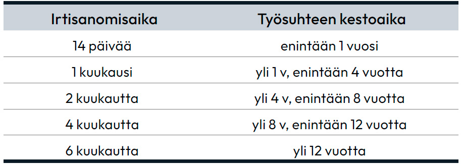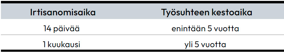 Etusivu » Työehtosopimukset » PAMin alojen työehtosopimukset » Vartiointialan työehtosopimus » 8 § Irtisanomisajat ← Takaisin sisällysluetteloon 8 § Irtisanomisajat Sisällysluettelo Open or close menu Takaisin sisällysluetteloon 8 § Irtisanomisajat Työnantajan irtisanoessaTyöntekijän irtisanoutuessaTyövoimareservi Työnantajan irtisanoessa Työntekijän irtisanoutuessa Työvoimareservi Tilapäistyöntekijän, jolle ei ole sovittu vähimmäistyöaikaa, työ-sopimus päättyy, jos kolmeen jaksoon ei ole tehty työtä, ellei toisin ole sovittu. ← Takaisin sisällysluetteloon